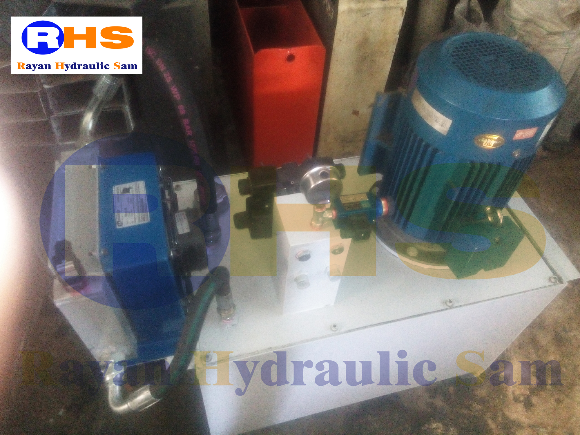 عملگر های اصلی و بزرگ ماشین ماشین بسته بندی پالت لس به صورت هیدرولیکی عمل نموده و چندین جک هیدرولیک در این ماشین استفاده می گردد که البته این جک ها به طور حتم باید دو به دو و به صورت جفت، دقیقا همزمان با همدیگر حرکت نمایند. برای این منظور و راه اندازی عملگر های هیدرولیکی ماشین نیاز به یک پاورپک هیدرولیک مناسب با مشخصات تعریف شده است. طراحی و ساخت پاورپک هیدرولیک برای ماشین ماشین بسته بندی بدون پالت این شرکت در شرکت رایان هیدرولیک سام انجام شد. به دلیل آنکه زمان کارکرد مداوم این پاورپک زیاد بوده و احتمال گرم شدن روغن وجود دارد از یک سردکن روغن هیدرولیک در این یونیت هیدرولیک استفاده گردید. ضمنا برای فراهم نمودن امکان حرکت همزمان دو به دوی جک های هیدرولیک از فلودیوایدر استفاده شده است. این یونیت هیدرولیک در سال ۱۳۹۴ طراحی و ساخته شده است. تمام مستندات فنی پروژه شامل نقشه ها و پارت لیست قطعات یدکی به زبان انگلیسی تهیه و در اختیار کارفرما قرار گرفت.